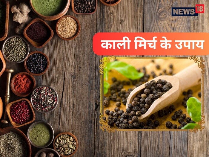 काली मिर्च के उपाय धन लाभ के लिए – 5 काली मिर्च के दाने लें और उन्हें अपने ऊपर से 7 बार घुमाकर किसी चौराहे पर चार दाने रख दें और पांचवा दाना आसमान की तरफ उछाल दें. इस उपाय को करने के बाद पीछे मुड़ कर ना देखें. धन लाभ होगा. शनि के कुप्रभाव से बचाव के लिए – यदि आप शनि के कुप्रभाव को झेल रहा हैं, उनके लिए काली मिर्च खाना लाभकारी हो सकता है. शनि दोष से मुक्ति के लिए काले कपड़े में काली मिर्च और ₹11 बांधकर किसी जरूरतमंद को दान करें. Image – Canva
