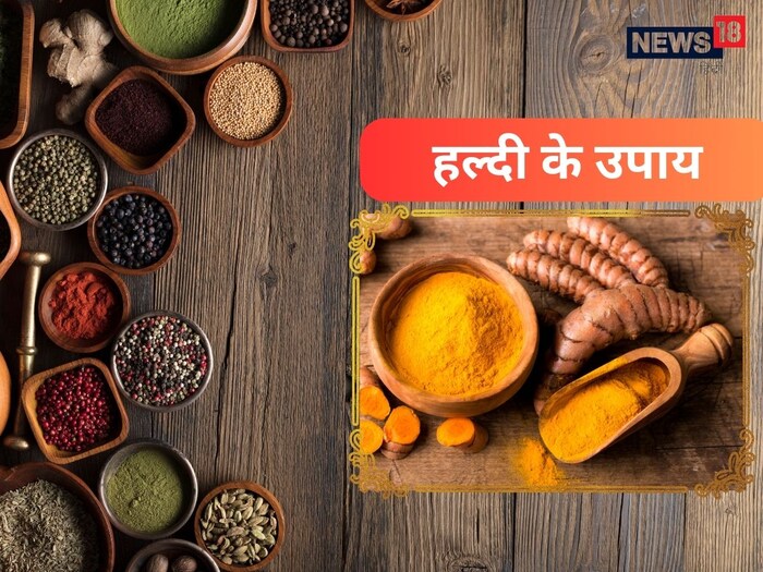 हल्दी के उपाय रुके काम पूरे करने के लिए – ज्योतिष शास्त्र में हल्दी का संबंध देव गुरु बृहस्पति के साथ माना गया है. उन्हें प्रसन्न करने के लिए गुरुवार के दिन पीली रंग की वस्तुएं जैसे चने की दाल, पीले वस्त्र, बेसन के लड्डू और खास तौर पर हल्दी किसी योग्य ब्राह्मण को दान करना चाहिए. मान्यताओं के अनुसार, ऐसा करने से व्यक्ति के रुके हुए कार्य पूरे होते हैं. Image – Canva