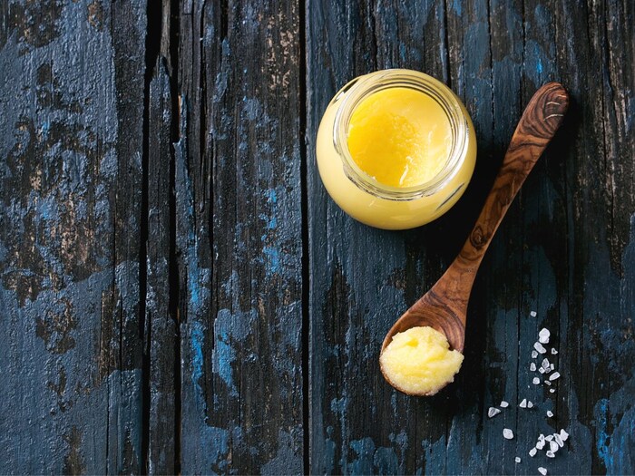 बॉडी स्क्रब बनाकर यूज करें: घी का इस्तेमाल आप बॉडी स्क्रब बनाने के लिए भी कर सकते हैं. इसके लिए दो चम्मच घी, दो चम्मच नारियल का दूध, एक चम्मच चीनी और एक चम्मच बेसन लें और इन सबको अच्छे से मिलाकर स्क्रब तैयार कर लें. फिर इस स्क्रब को स्किन पर अप्लाई करके कुछ देर सर्कुलर मोशन में स्क्रब करें और फिर नॉर्मल तरीके से बाथ ले लें. (Image-Canva)