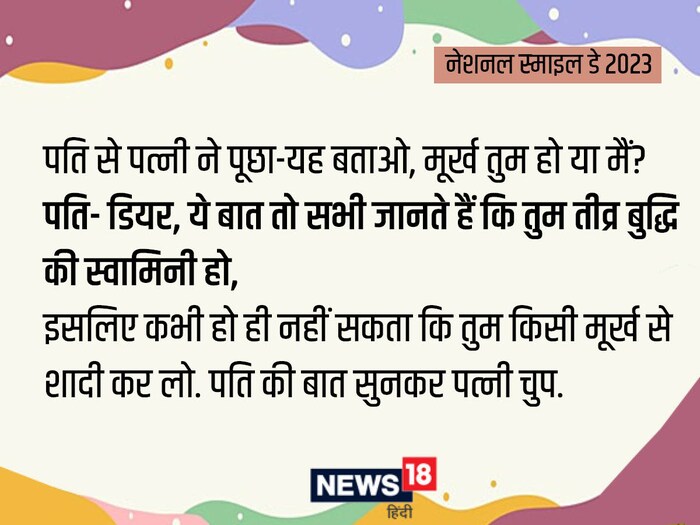 पति से पत्नी ने पूछा कि यह बताओ, मूर्ख तुम हो या मैं? पति- डीयर, ये बात तो सभी जानते हैं कि तुम तीव्र बुद्धि की स्वामिनी हो,इसलिए कभी हो ही नहीं सकता कि तुम किसी मूर्ख से शादी कर लो. पति की बात सुनकर पत्नी चुप.